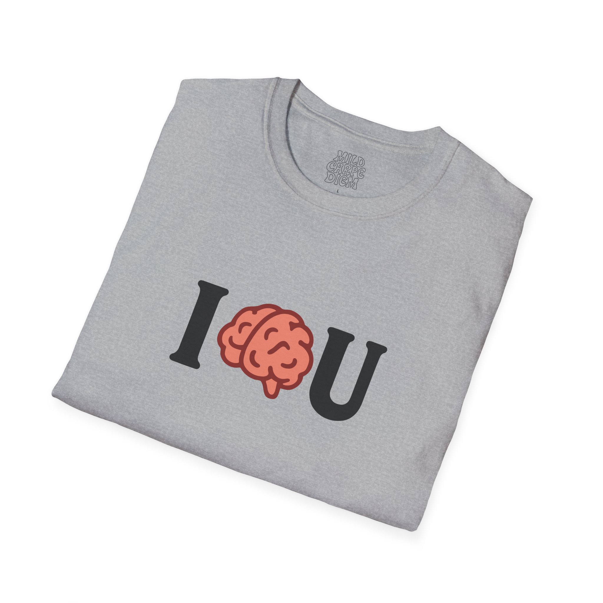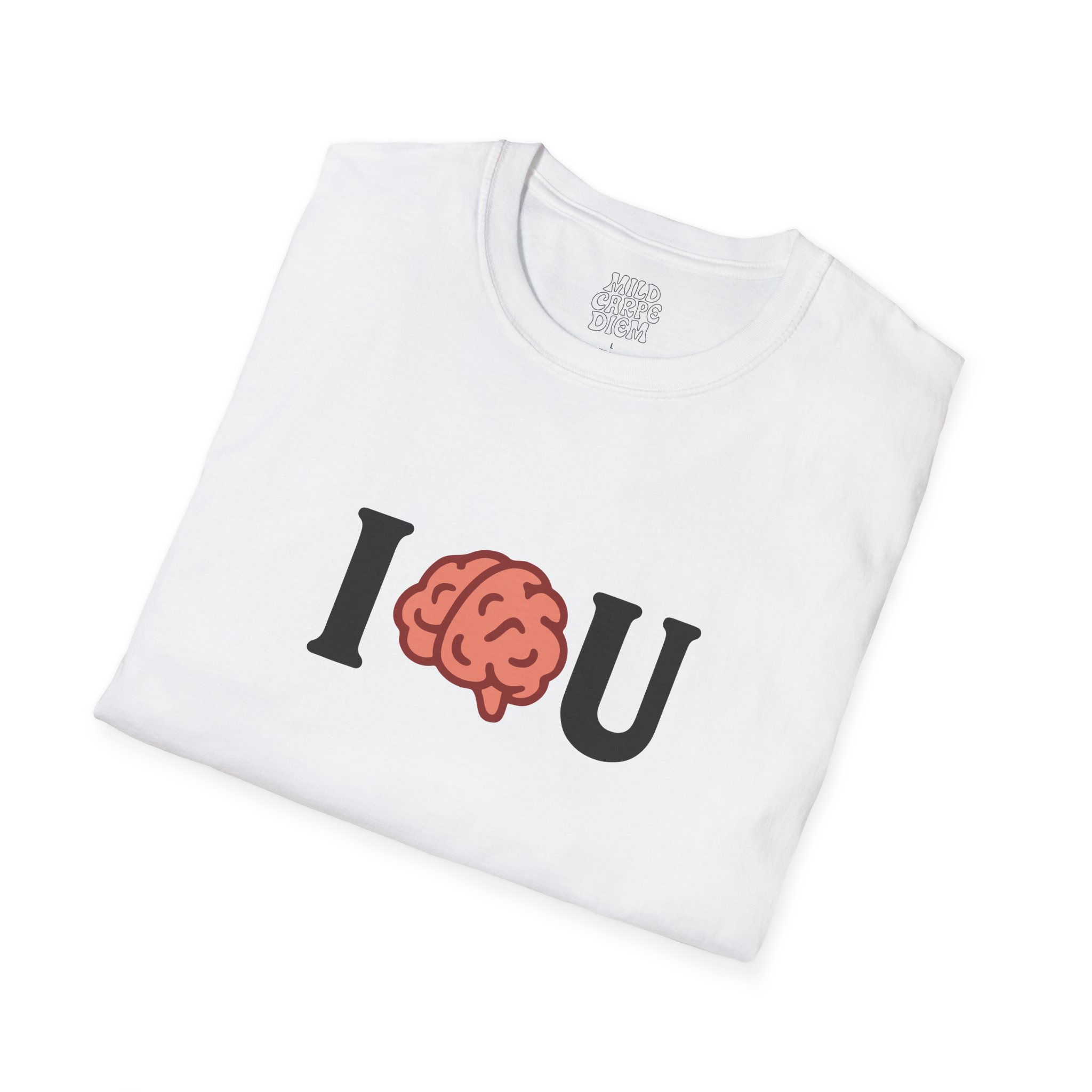 Cute nerdy valentine love shirt. Soft, simple, and quietly clever — this crewneck tee speaks nerdy affection without shouting. Lightweight ring-spun cotton drapes cleanly over the shoulders and lets the small, playful graphic (a heart-shaped brain between I and U) take center stage. It’s the kind of shirt that sits comfortably through a long study session, a museum date, or a late-night deep conversation. The tubular knit and shoulder tape keep the silhouette smooth while the ribbed collar holds its shape wash after wash. Breathable and neutral, it layers easily under a cardigan or wears solo as a low-key statement for anyone who loves intellect with a wink.