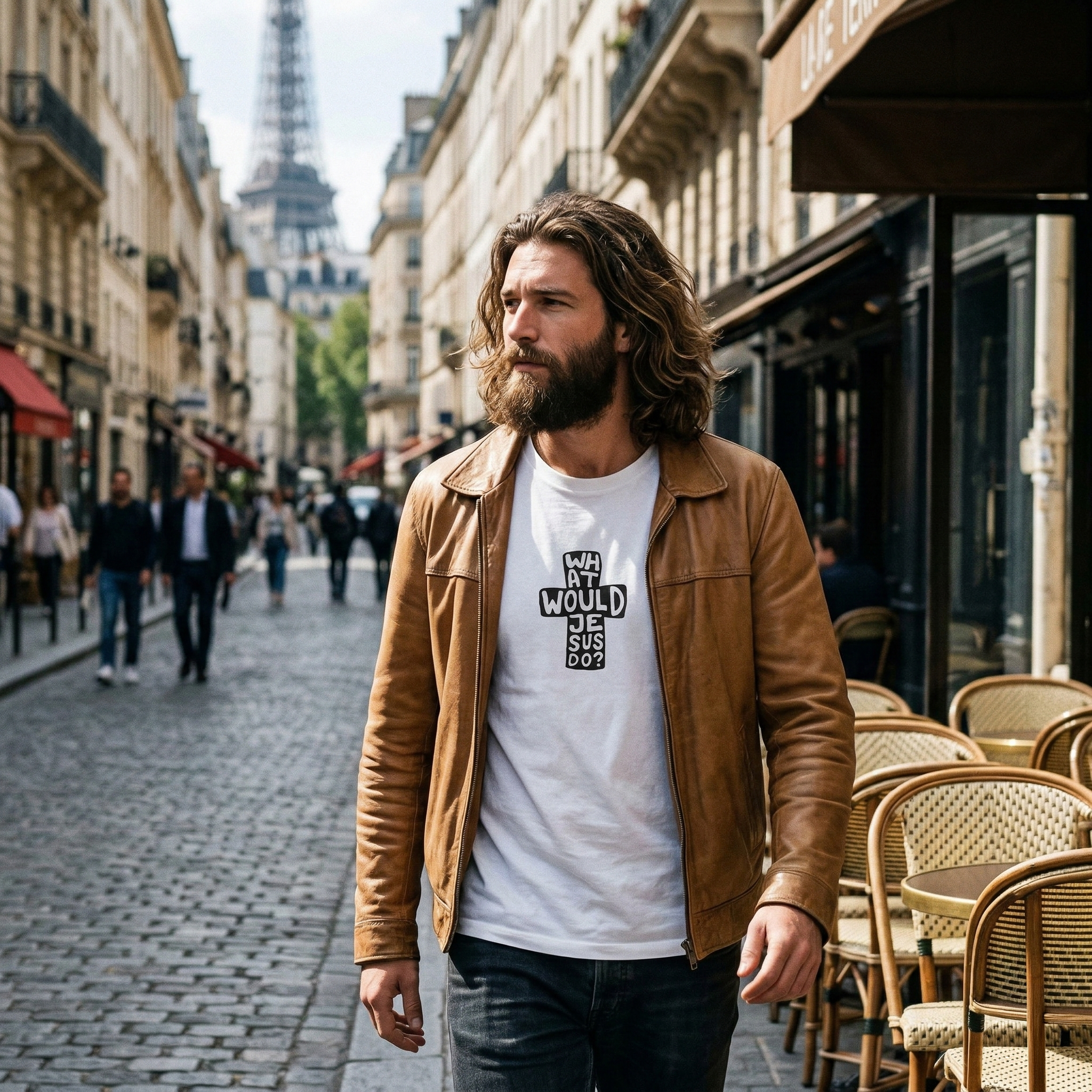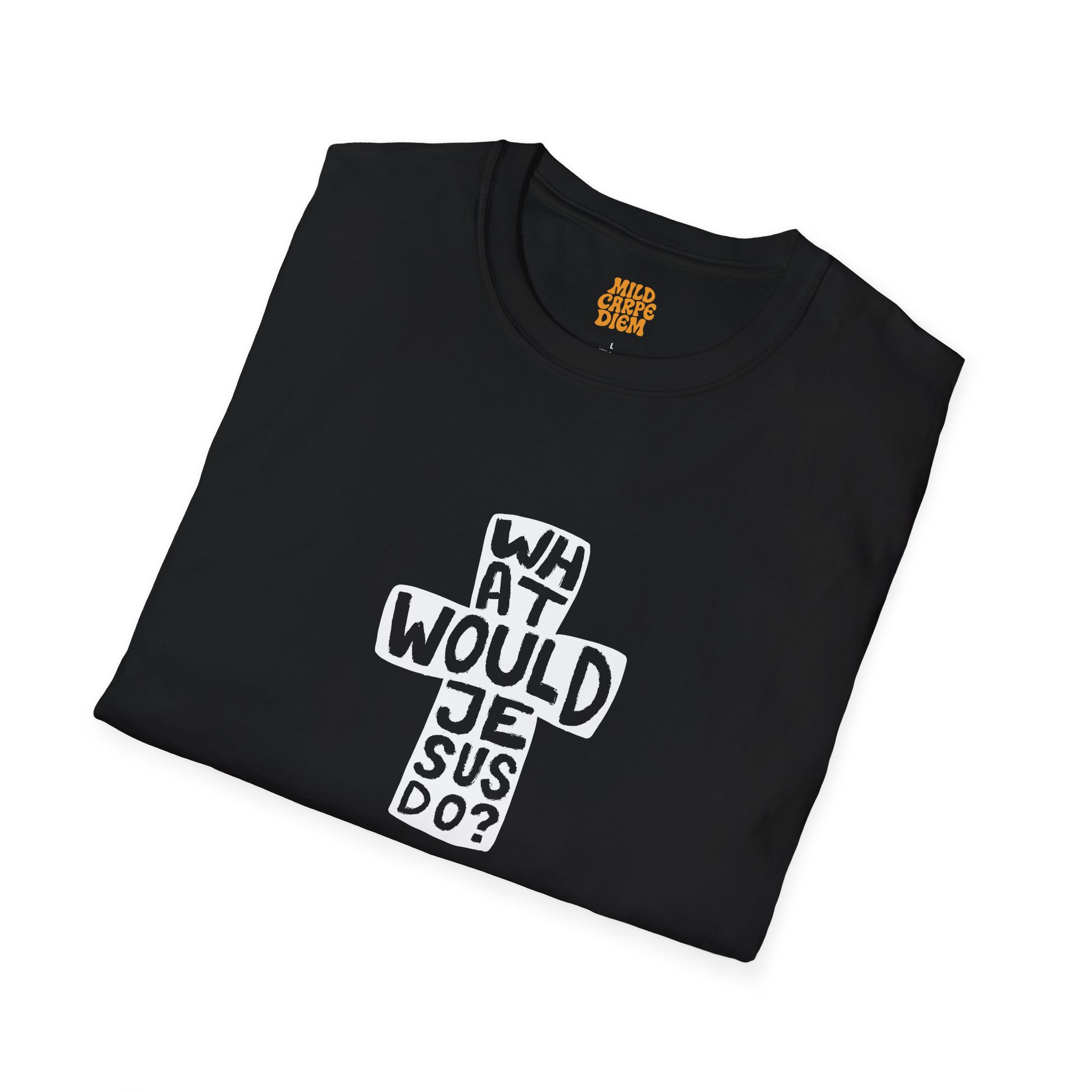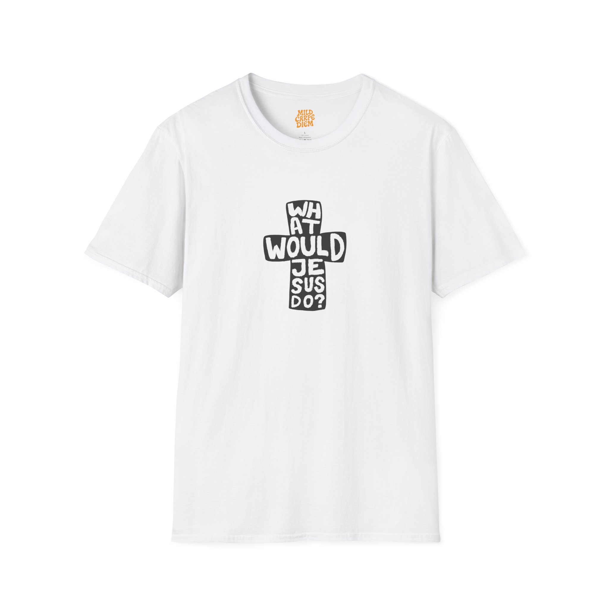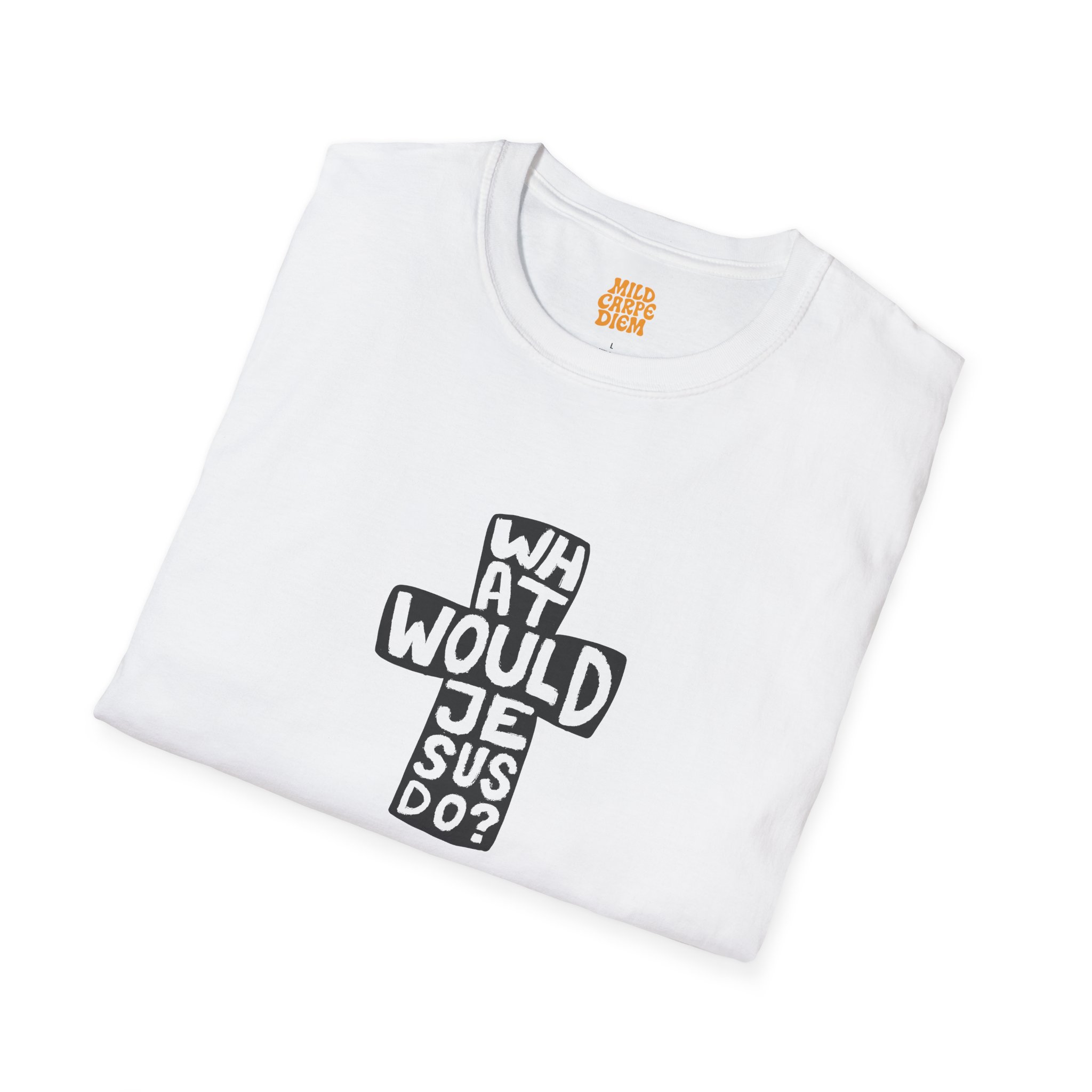 Our WWJD Cross-Text Tee takes the iconic “What Would Jesus Do?” phrase and presents it in a striking, vertical cross-text graphic. Bold, clean, and impossible to ignore, the question is stacked vertically to form a cross, printed in a deep, matte black on a pristine white canvas. It’s a clean fusion of faith, philosophy, and clean-cut design, perfect for the modern thinker.