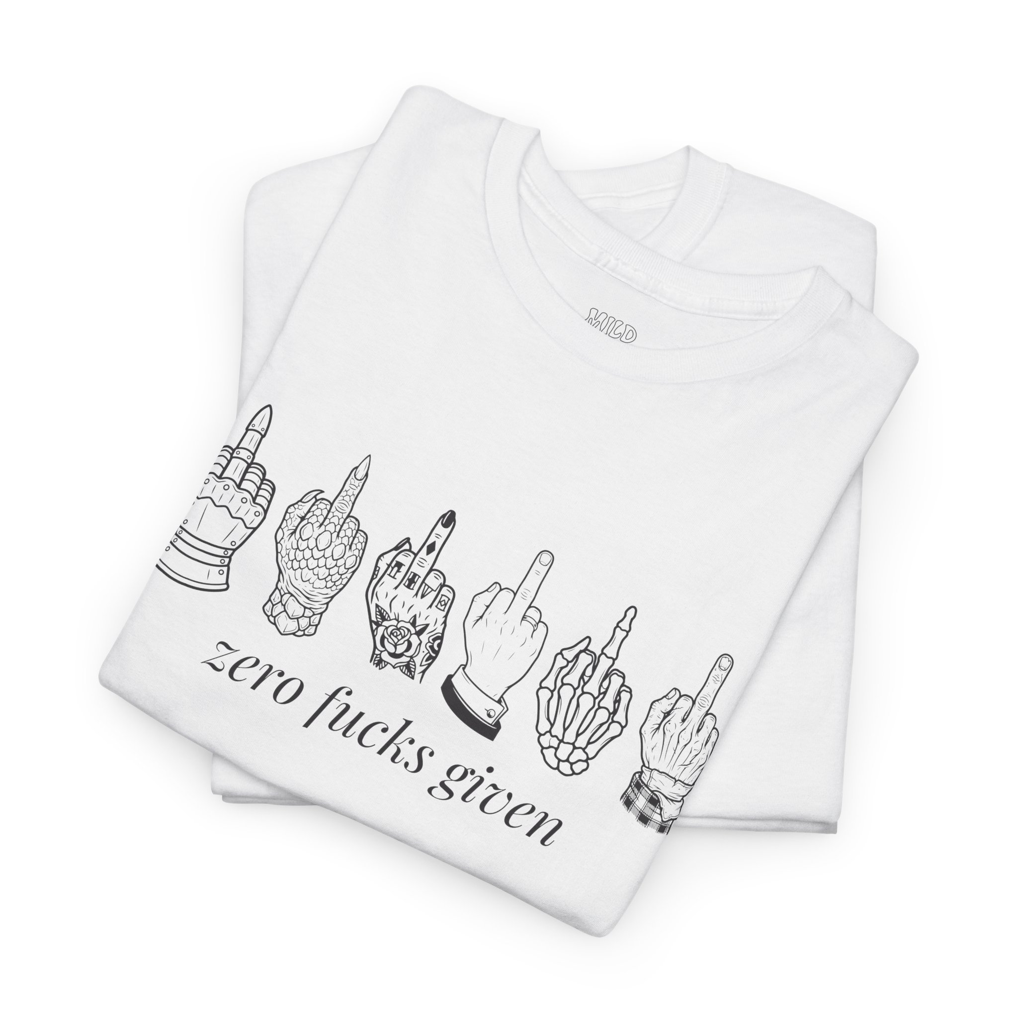 Middle Finger Graphic Tee — A soft, durable cotton tee with a small, cheeky hand-illustration graphic across the chest. The subtly rebellious design reads as low-key and ironic — a quiet wink rather than a shout — so it slips easily into everyday wear. Wear it under a worn denim jacket for late-night hangs, layer it with an open flannel on road trips, or keep it simple with jeans for coffee runs. The lightweight, breathable fabric and classic crew cut make it comfortable all day, while the tear-away label and reinforced collar keep things irritation-free. Ethically sourced cotton and careful printing give the art crisp lines that age well with wash after wash.